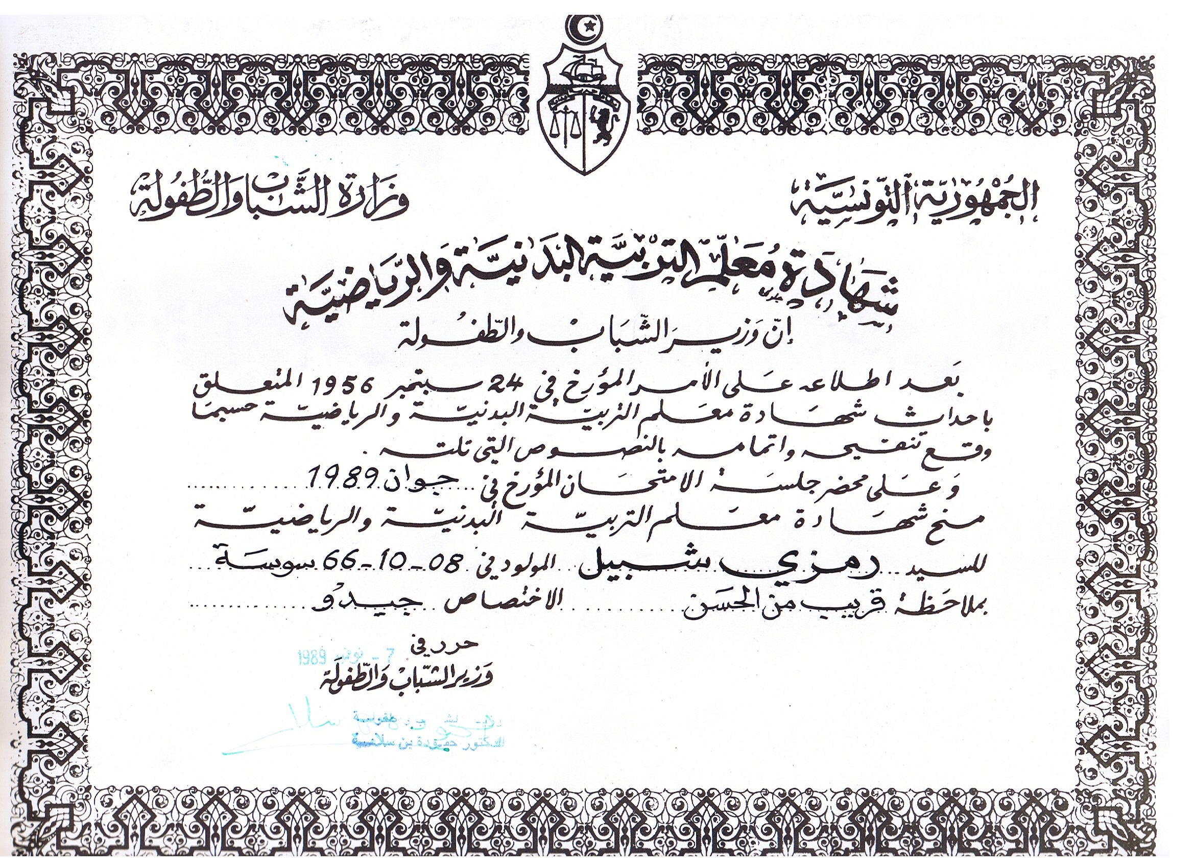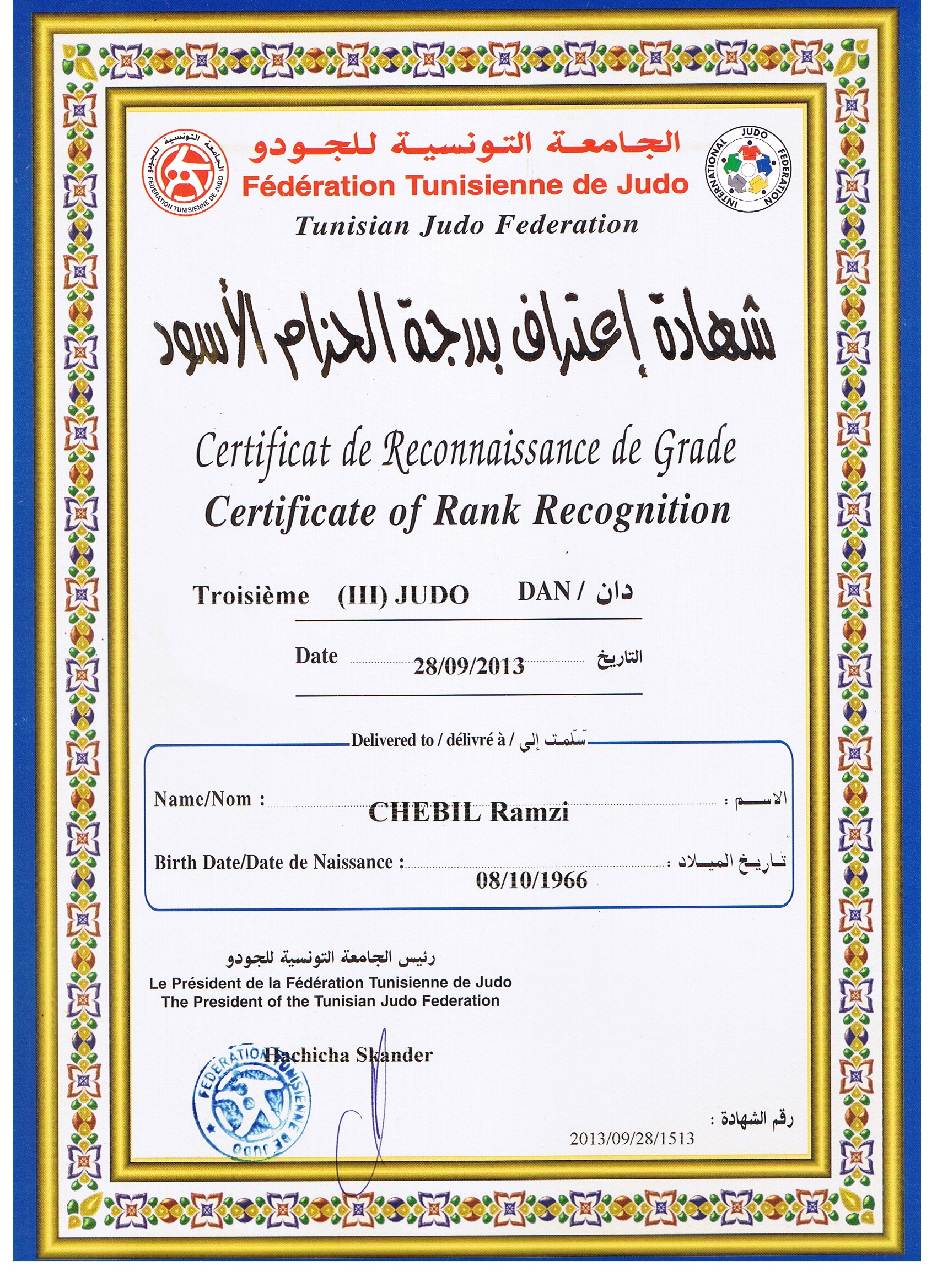 Champion de Tunisie Judo catégorie – 60 Kg en 1985