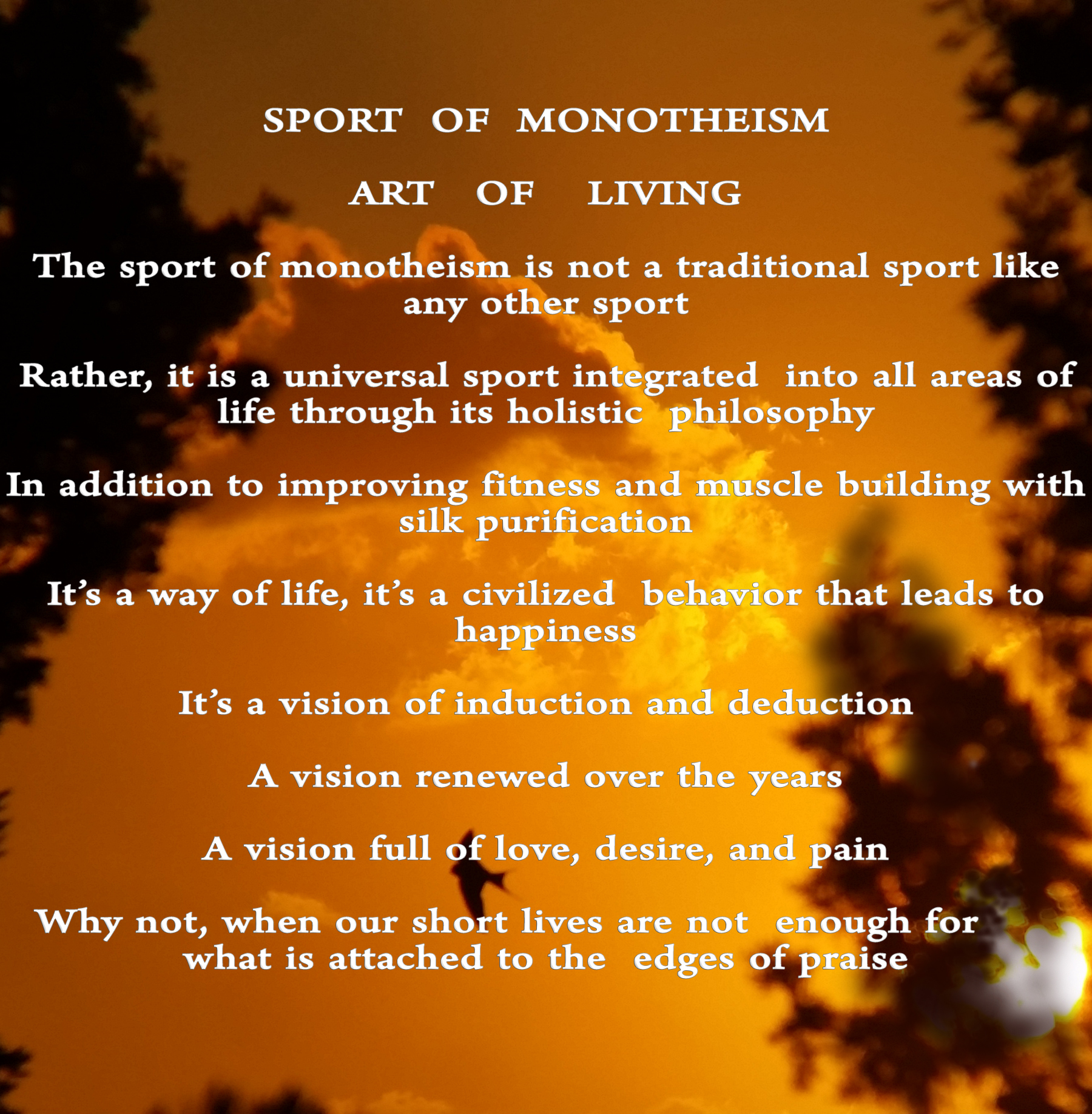 . The sport of monotheism is a way of life, it’s a civilized behavior that...