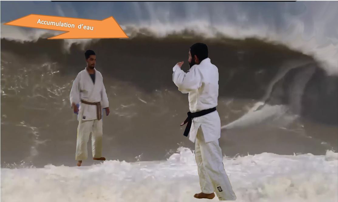The surge of water rising and accumulating progresses in a specific direction, akin to a purposeful attack that
